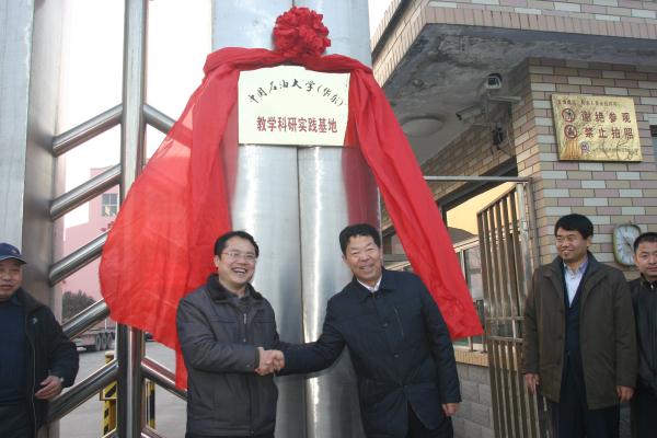 2013年1月30日,中国石油大学(华东)与齐鲁石化机械制造公司举行隆重的共建教学科研实践基地协议签字仪式。石油大学是我国的知名学府,齐鲁机械也是中国机械行业500强企业。这之前的几年里石油大学每年都有上百人来齐鲁机械实习研讨。石油大学机电工程学院教学科研基地落户齐鲁机械将在人才培养、学术交流和新产品开发上助力齐鲁机械的振兴发展。这次双方就产品开发、成果优先转让、明确了教学实习基地等合作方面,本着双方合作共同发展的原则签发了协议。 图为董事局主席马之清与石油大学机电学院的领导为实习基地揭牌后亲切握手。