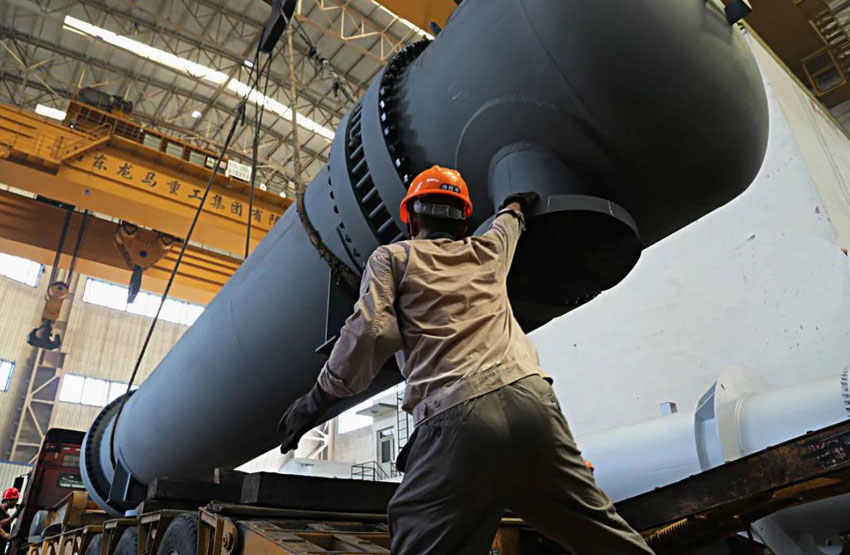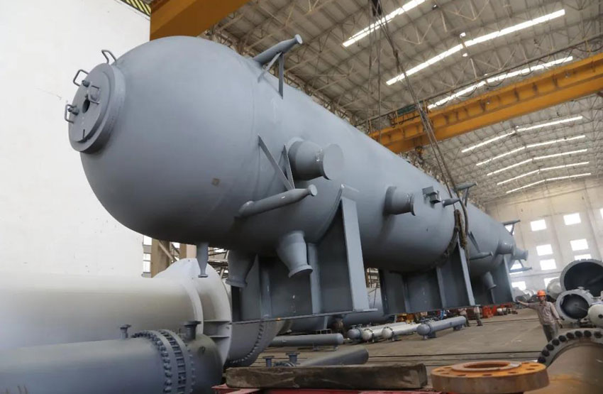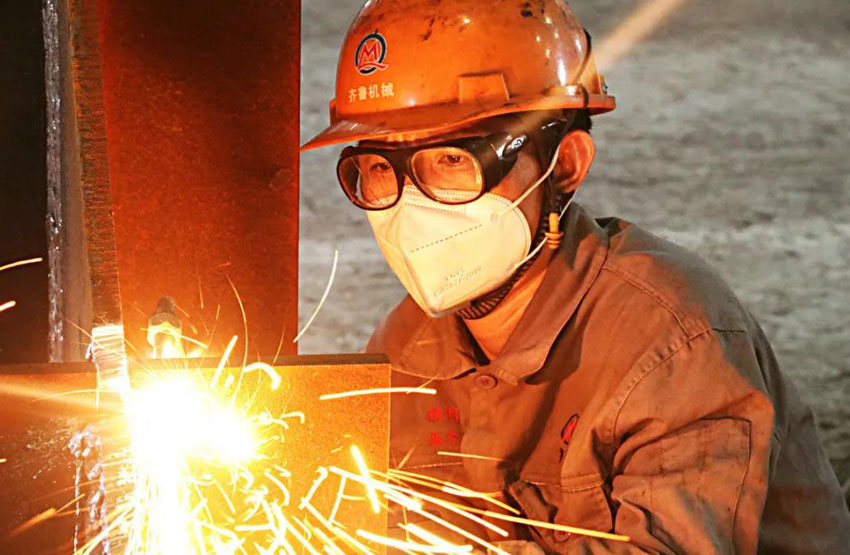 为更好的组织生产,公司以生产部为指挥中心,针对车间人员情况、生产任务总量以及工期的紧迫程度,编制每台设备的网络计划,要求车间必须按网络计划要求的时间节点完成,精确到半个工作日。铆焊一、二车间提出复合板换热器水压过于集中,无法按期完成的情况,生产部及时作出调整,综合考虑厂内的各种资源,打破车间界限,分别将铆焊一车间的两台施工设备调到铆焊四车间组织施工,有效的缓解了铆焊一、二车间的生产压力。目前各铆焊车间厂房里的每一台焊机从未间断,焊光闪烁,工人们不停地忙碌,员工们不畏高温,身穿厚重的防阻燃工作服,一如既往地坚守在各自的平凡岗位上。来到高压汽包施工现场,电焊工身下的温度高达300多度,他们个个都是汗流浃背,一股股热浪夹杂着呛人的烟气、粉尘迎面扑鼻而来,工人师傅们就是在这样的高温环境下辛勤的工作。他们的脸上是一道道的汗痕,衣服也被汗水浸得湿漉漉的,但他们从没有任何怨言,再苦再累,咬咬牙,默默无闻的坚守在岗位上,为了设备的早日出厂员工们用那坚实的臂膀支持承担了生产的重量。