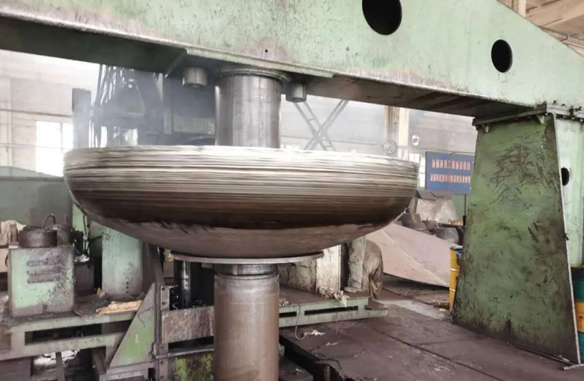 国内企业在加工大尺寸、厚板材封头时,通常采用热压成型,因受热不均匀、钢材组织结构易发生变化、成品尺寸公差大等因素制约着产品可靠度和生产效率。本次技术突破,使公司在今后生产中,在保证较高加工精度的前提下大大提高了生产效率。同时,冷旋对钢材组织结构影响较小,产品在使用中的耐压程度及抗破坏性也优于传统加工方法。