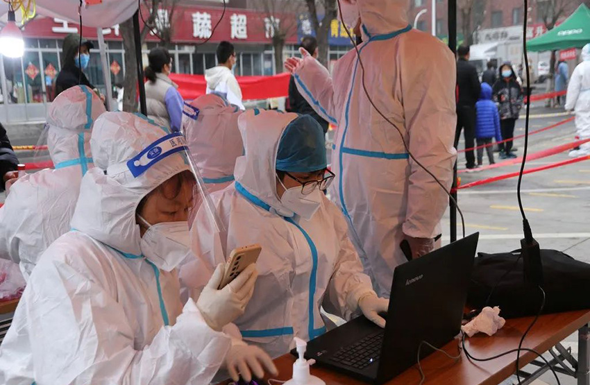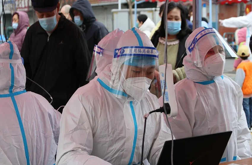 2022年3月19日凌晨四点,气温低至-4℃,同学们早已经起床,第一时间赶往辛店街道办,接受统一部署。他们被分别安排到了牛山社区、青青家园、馨香园等六处核酸检测点。由于身穿防护服的原因,同学们只能不吃不喝直到本次核酸检测全部完成。这是一次意志的考验!