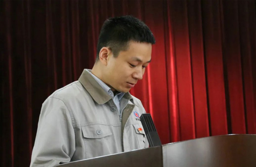 会上,厂长李飞宣读了《机械公司导师带徒实施管理办法》。